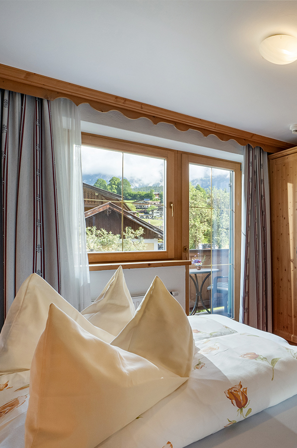 Treten Sie ein und lassen Sie den Alltag draußen. Unsere Standard Doppelzimmer verbinden alpinen Charme mit modernem Komfort – ideal für zwei, die den Wilden Kaiser entdecken und sich danach in ein gemütliches Bett (180 x 200 cm) fallen lassen möchten.